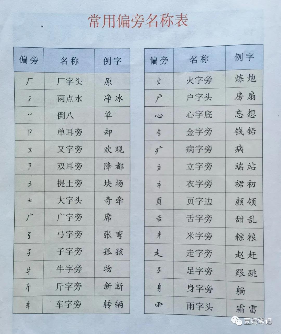 我翻了一下豆豆的语文书,常用偏旁基本在一年级都有介绍过,二年级开始,偏旁学习就是作为生字学习的一部分进行了。