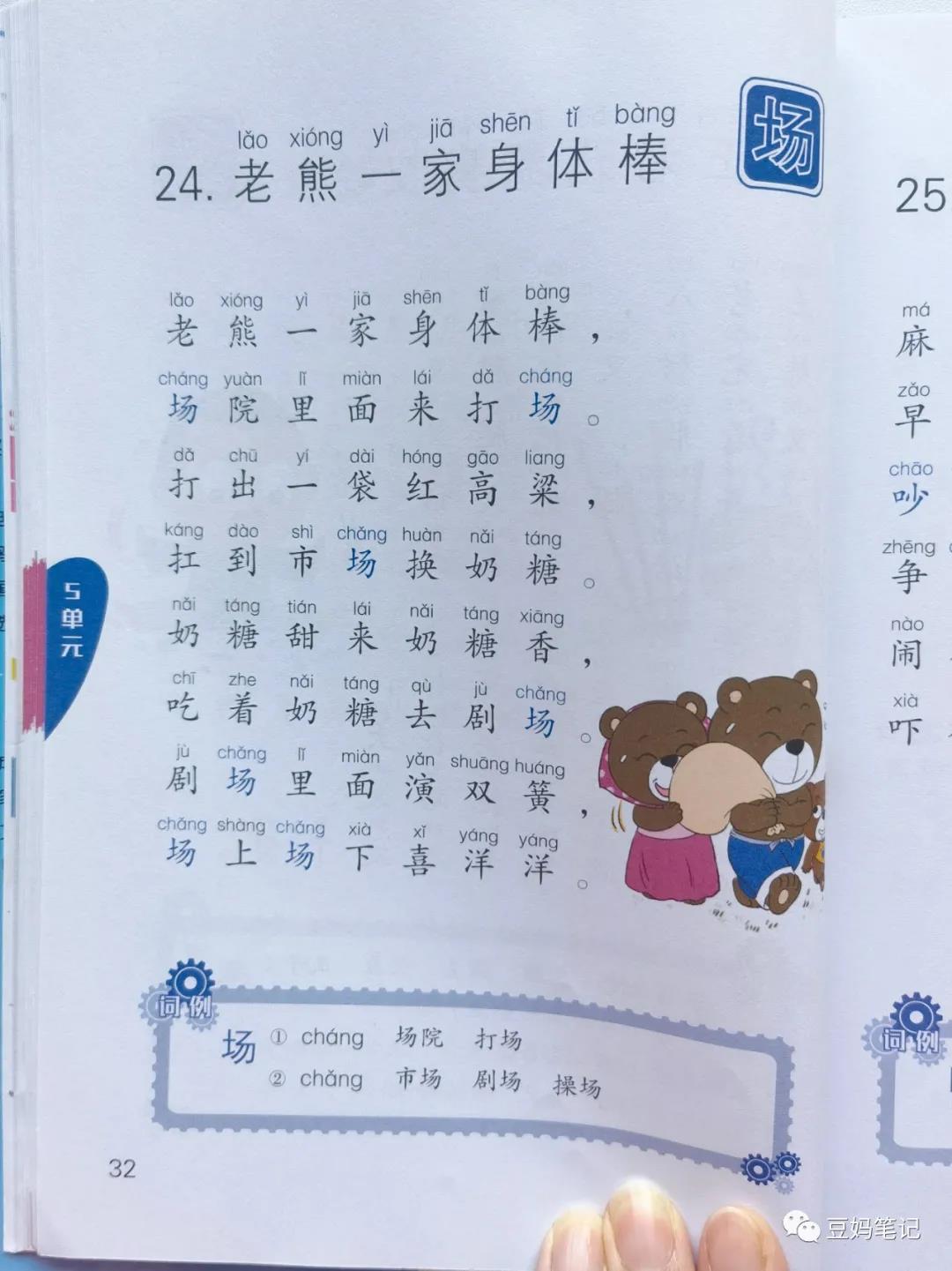 比如这学期学到“场”这个多音字,就可以让小朋友念这首:
