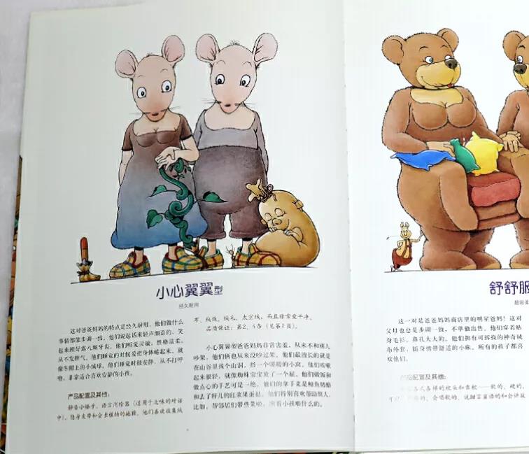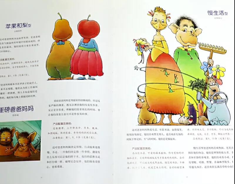 书中,有一个神奇的商店,出售世界上35种类型的爸爸妈妈。如果孩子对现在的爸妈不满意,可以从书中任选一种类型,然后填到书后的预订单中,等待“送货上门”图片。