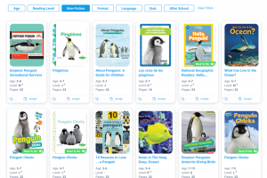 这时就会有家长请我推荐一些科普类的读物,我很粉Epic的网站,上面有大量的英文读物,不仅能按照年龄和等级分类,还可以按照主题和体裁来分类。比如最近我们在学习企鹅的主题,我就搜到了上百本的关于企鹅的科普类读物:
