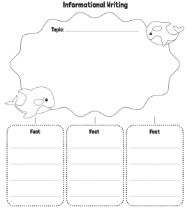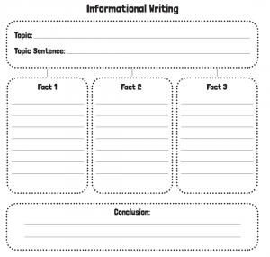 接下来,教给孩子们信息文的写作结构,我决定用下面的组织结构图。低年级的孩子可以先列出主题,写出开头introduction,然后列出3个关于主题的事实: