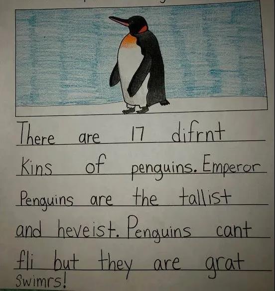 如果有不拼的单词,可以查询老师给他们提供的高频词。这也告诉我们为什么要让孩子从小背诵记忆高频词了!因为如果在写作的过程中如果有大量不会写的高频词,这会打断孩子的写作思路: