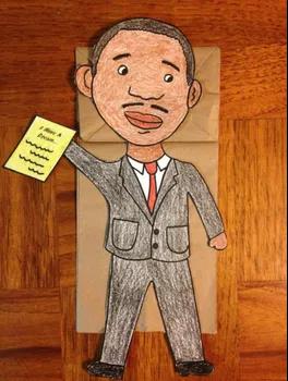 然后,我们一起用咖啡色的纸袋子,动手做了一个马丁路德金的玩偶手工,让小朋友意识到这次民权运动演讲的力量。