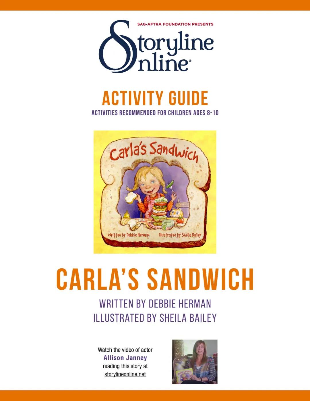 以《Carla’s Sandwich》为例,家长版本的活动指南满满9页,活动指南分为了故事概要、主题、和课后拓展活动等。
