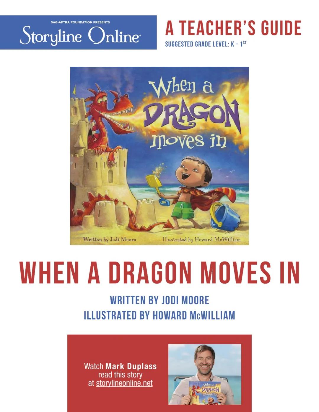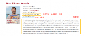 以Mark Duplass阅读的《When a Dragon Moves in》为例,这是一个关于一个非常幸运的男孩在沙滩上建造了一座城堡,看见巨龙飞进来的故事,适合幼儿园到一年级的孩子们阅读观看哦。