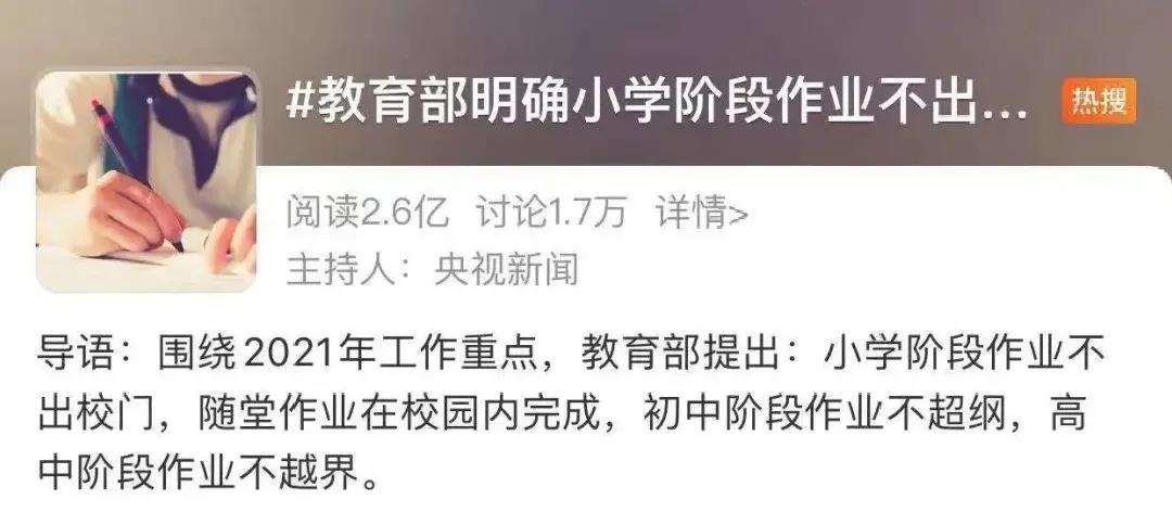 昨天,教育部出了个新规:小学作业不出校门。