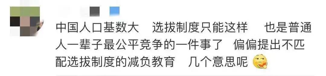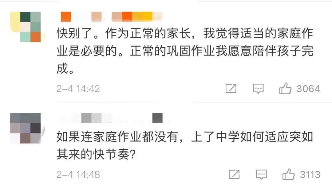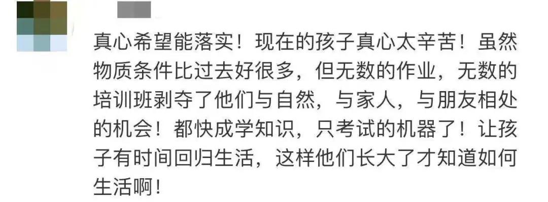 在非官方的留言下,我看到了更多的质疑派,质疑的理由只有一个:孩子要面对的挑战逃无可逃,一刀切的课内减负其实给家长课外增负。