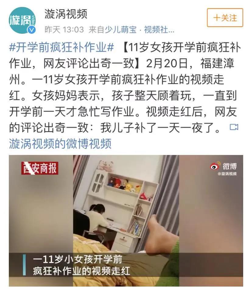 这不,前几天一个11岁的福建小女孩,就因为疯狂补作业上了热搜。