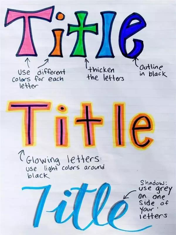 如果实在写不好艺术字,可以正常书写标题后,将字体描粗。然后再通过加入边框、主题元素,增加画面美感。