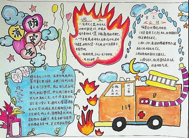 消防手抄报,元素就应该跟消防员、消防车相关。