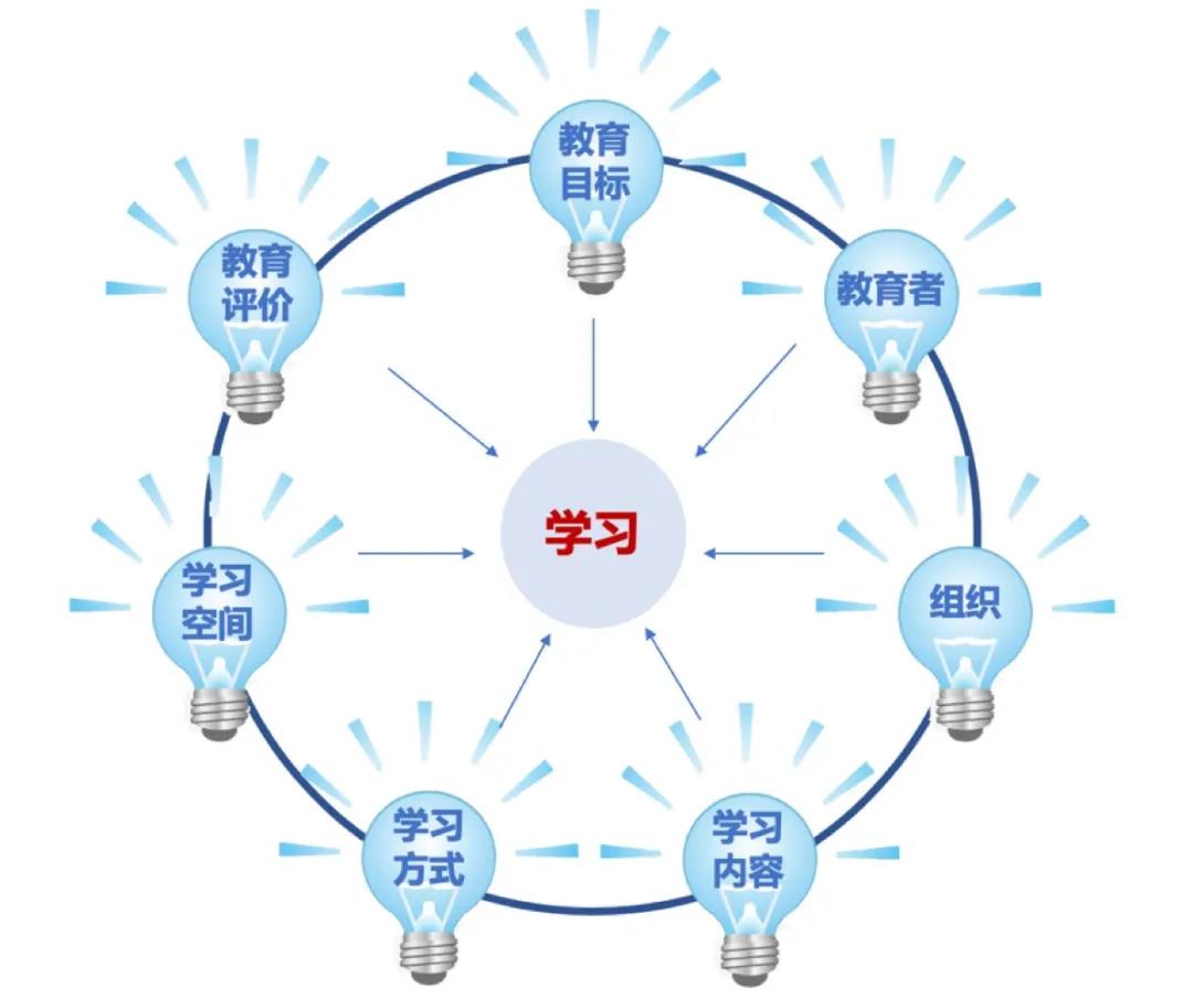 何为“教育的七盏灯”?其实就是观察教育发展到什么程度的七个核心要素,即组织、空间、教育者、学习内容、学习方式、教育目标和评价体系。这七盏灯可以用来观察,一个时代的教育或是某一所学校,能否应对时代转型所提出的需求和挑战。