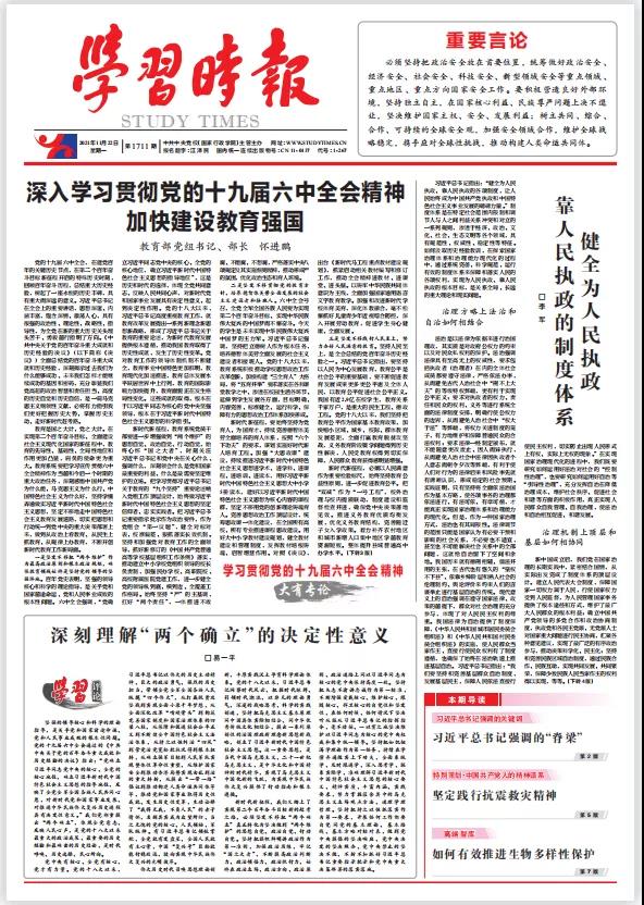 11月22日,教育部党组书记、部长怀进鹏在《学习时报》撰文《深入学习贯彻党的十九届六中全会精神 加快建设教育强国》,一起来看——
