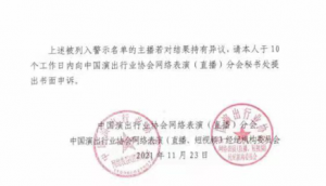 为规范网络表演(直播)行业主播管理,净化网络表演(直播)环境,维护行业生态有序、良性、健康发展的秩序,中国演出行业协会网络表演(直播)分会自2018年开展网络主播警示名单工作以来,已经陆续发布8批共358名网络主播警示名单,并组织全体会员对严重违法违规主播在行业内实行联合抵制和惩戒。