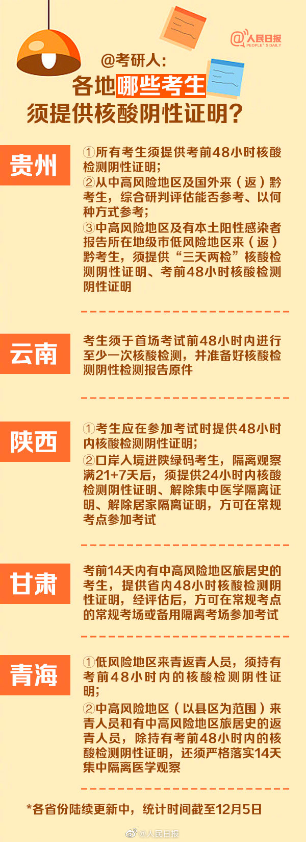 日前,多省份公布2022考研防疫要求:保持健康码、行程卡绿码,考前14天起非必要不流动、打卡或填写健康监测信息,特别是多省份提醒考研前48小时内做核酸,并提出具体要求。哪些考生需要做核酸?